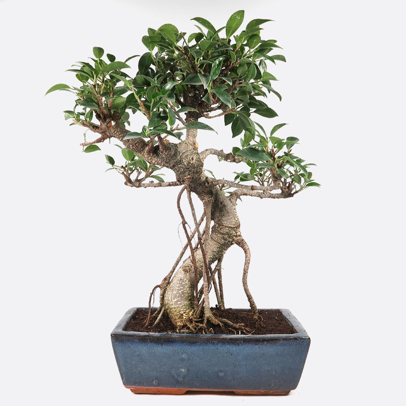 Der Ficus retusa mag einen hellen Fensterplatz und – wie alle anderen Zimmerbonsais – während den warmen Sommermonaten einen Platz im Freien. Allerdings sollte der Ficus retusa bereits am Sommerende wieder ins Haus gebracht werden, denn als Tropenbaum mag er Temperaturen über 18°C. Auch in den dunkleren Wintermonaten sollte für ausreichend Licht gesorgt werden. Bewährt haben sich die LED-Pflanzenwachstumslampen, welche wir bei unseren Bonsais getestet haben. Gegen die trockene Heizungsluft und Schädlingsbefall hilft ein grosser Unterteller mit nassem Kies. Ebenfalls hilfreich ist das tägliche Einsprühen der Blätter (auch Blattunterseite) mit einem Wasserzerstäuber. Die Erde sollte vor dem nächsten Giessen leicht antrocknen. Je wärmer die Temperatur, desto höher ist der Wasserverbrauch. Gedüngt wird mit einem Bonsaidünger während der Wachstumszeit alle 10 - 14 Tage, im Winter nur noch alle 3 - 4 Wochen.