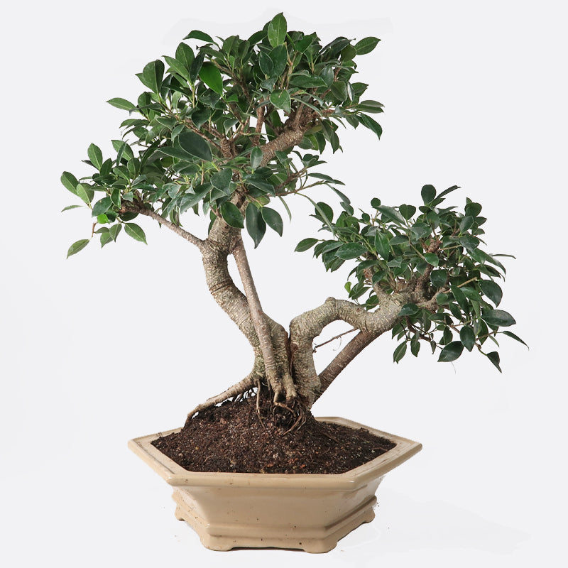 Der Ficus retusa mag einen hellen Fensterplatz und – wie alle anderen Zimmerbonsais – während den warmen Sommermonaten einen Platz im Freien. Allerdings sollte der Ficus retusa bereits am Sommerende wieder ins Haus gebracht werden, denn als Tropenbaum mag er Temperaturen über 18°C. Auch in den dunkleren Wintermonaten sollte für ausreichend Licht gesorgt werden. Bewährt haben sich die LED-Pflanzenwachstumslampen, welche wir bei unseren Bonsais getestet haben. Gegen die trockene Heizungsluft und Schädlingsbefall hilft ein grosser Unterteller mit nassem Kies. Ebenfalls hilfreich ist das tägliche Einsprühen der Blätter (auch Blattunterseite) mit einem Wasserzerstäuber. Die Erde sollte vor dem nächsten Giessen leicht antrocknen. Je wärmer die Temperatur, desto höher ist der Wasserverbrauch. Gedüngt wird mit einem Bonsaidünger während der Wachstumszeit alle 10 - 14 Tage, im Winter nur noch alle 3 - 4 Wochen.