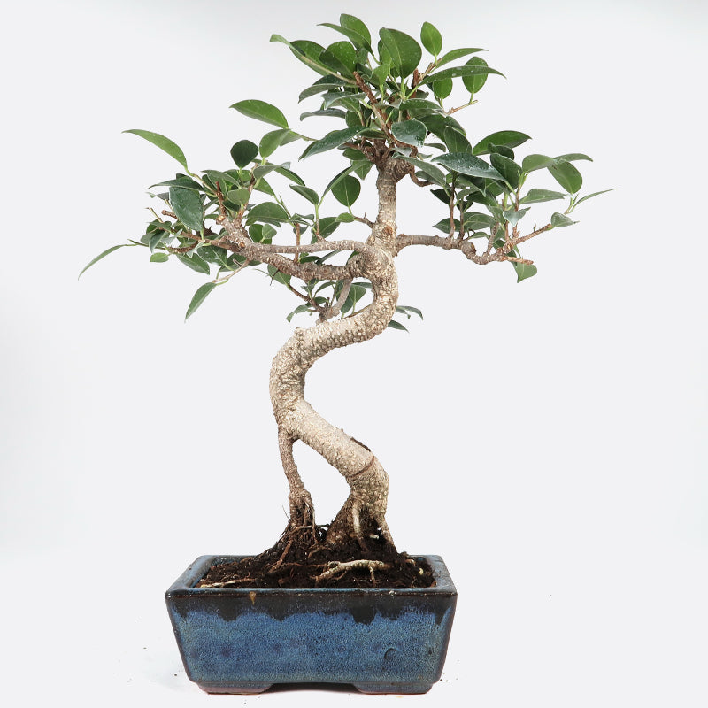 Der Ficus retusa mag einen hellen Fensterplatz und – wie alle anderen Zimmerbonsais – während den warmen Sommermonaten einen Platz im Freien. Allerdings sollte der Ficus retusa bereits am Sommerende wieder ins Haus gebracht werden, denn als Tropenbaum mag er Temperaturen über 18°C. Auch in den dunkleren Wintermonaten sollte für ausreichend Licht gesorgt werden. Bewährt haben sich die LED-Pflanzenwachstumslampen, welche wir bei unseren Bonsais getestet haben. Gegen die trockene Heizungsluft und Schädlingsbefall hilft ein grosser Unterteller mit nassem Kies. Ebenfalls hilfreich ist das tägliche Einsprühen der Blätter (auch Blattunterseite) mit einem Wasserzerstäuber. Die Erde sollte vor dem nächsten Giessen leicht antrocknen. Je wärmer die Temperatur, desto höher ist der Wasserverbrauch. Gedüngt wird mit einem Bonsaidünger während der Wachstumszeit alle 10 - 14 Tage, im Winter nur noch alle 3 - 4 Wochen.
