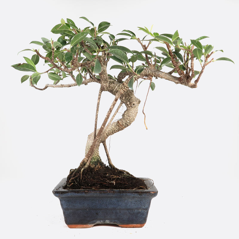 Der Ficus retusa mag einen hellen Fensterplatz und – wie alle anderen Zimmerbonsais – während den warmen Sommermonaten einen Platz im Freien. Allerdings sollte der Ficus retusa bereits am Sommerende wieder ins Haus gebracht werden, denn als Tropenbaum mag er Temperaturen über 18°C. Auch in den dunkleren Wintermonaten sollte für ausreichend Licht gesorgt werden. Bewährt haben sich die LED-Pflanzenwachstumslampen, welche wir bei unseren Bonsais getestet haben. Gegen die trockene Heizungsluft und Schädlingsbefall hilft ein grosser Unterteller mit nassem Kies. Ebenfalls hilfreich ist das tägliche Einsprühen der Blätter (auch Blattunterseite) mit einem Wasserzerstäuber. Die Erde sollte vor dem nächsten Giessen leicht antrocknen. Je wärmer die Temperatur, desto höher ist der Wasserverbrauch. Gedüngt wird mit einem Bonsaidünger während der Wachstumszeit alle 10 - 14 Tage, im Winter nur noch alle 3 - 4 Wochen.