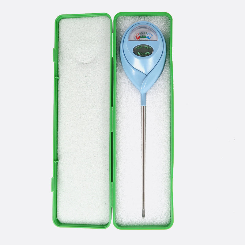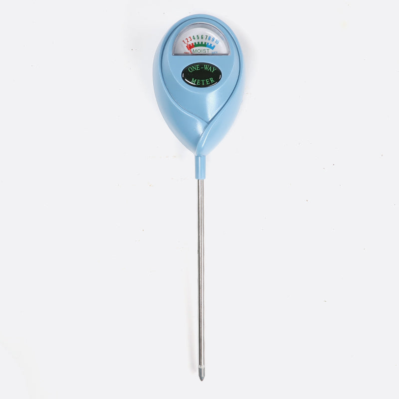Den Feuchtigkeitsmesser in die Erde stecken, einige Sekunden warten und den Wert ablesen. Rot = trocken, Grün = feucht, Blau = nass. Nach dem Ablesen den Sensor wieder herausziehen und mit einem Tuch abwischen.